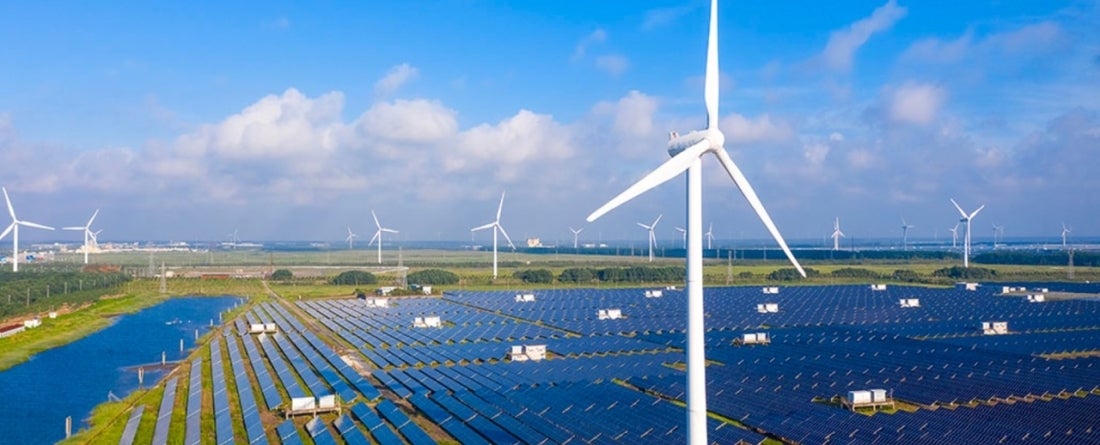 picture of solar panels and wind farm